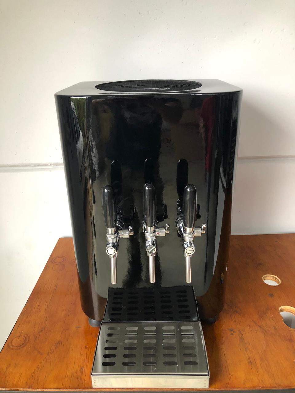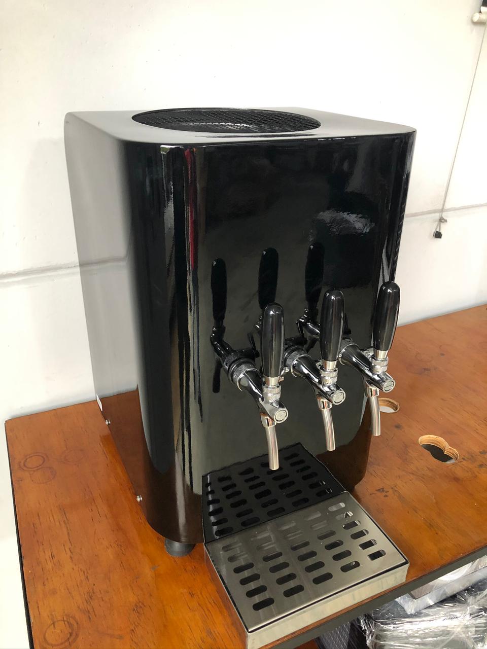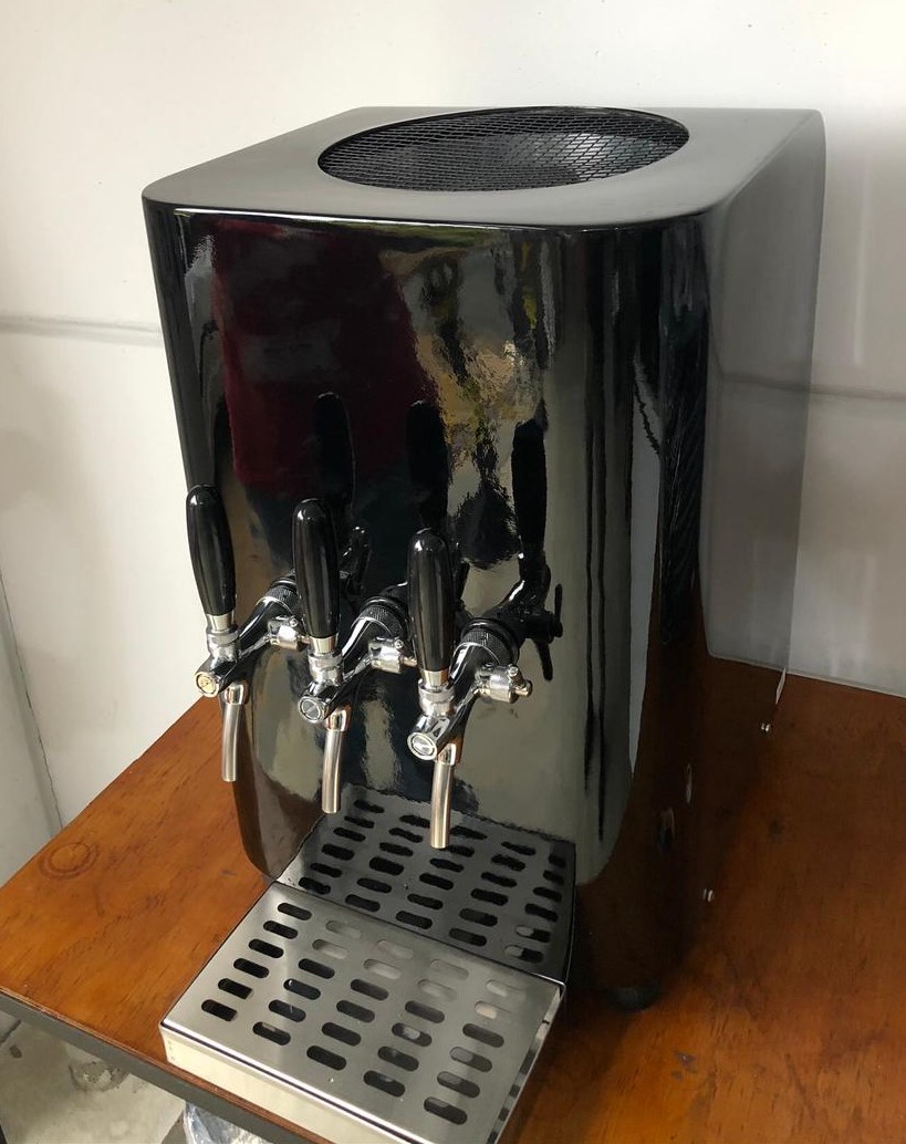 Atendendo em média até 40 pessoas, possui capacidade de extrair 50 litros de chope por hora. Utilizamos aço inox 304 para fabricação da base e da bandeja pingadeira, garantindo muito mais resistência à oxidação e corrosão. Com acabamento em fibra reforçada recebendo pintura PU, conta com três torneiras modelo Italiana cromada em aço inox para servir o chope líquido ou creme.